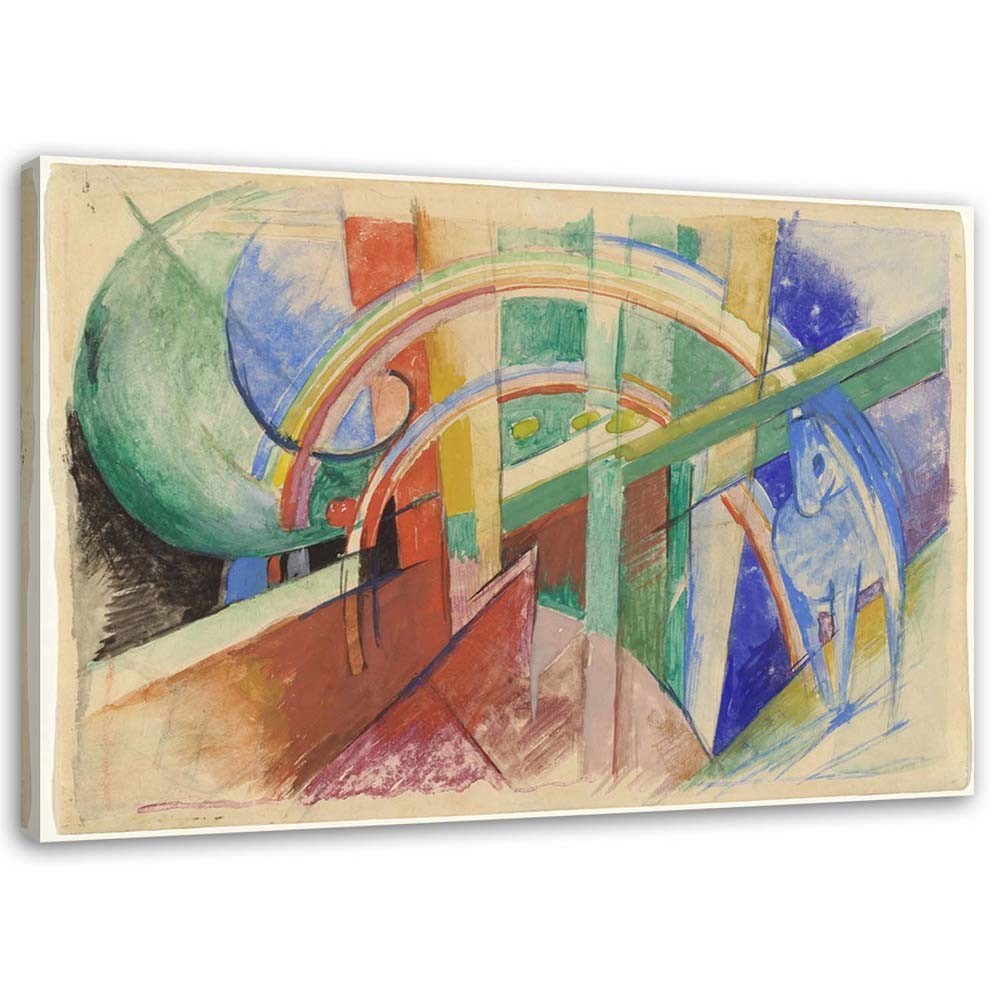 Bild auf Leinwand, Blaues Pferd und Regenbogen - F. Marc Reproduktion