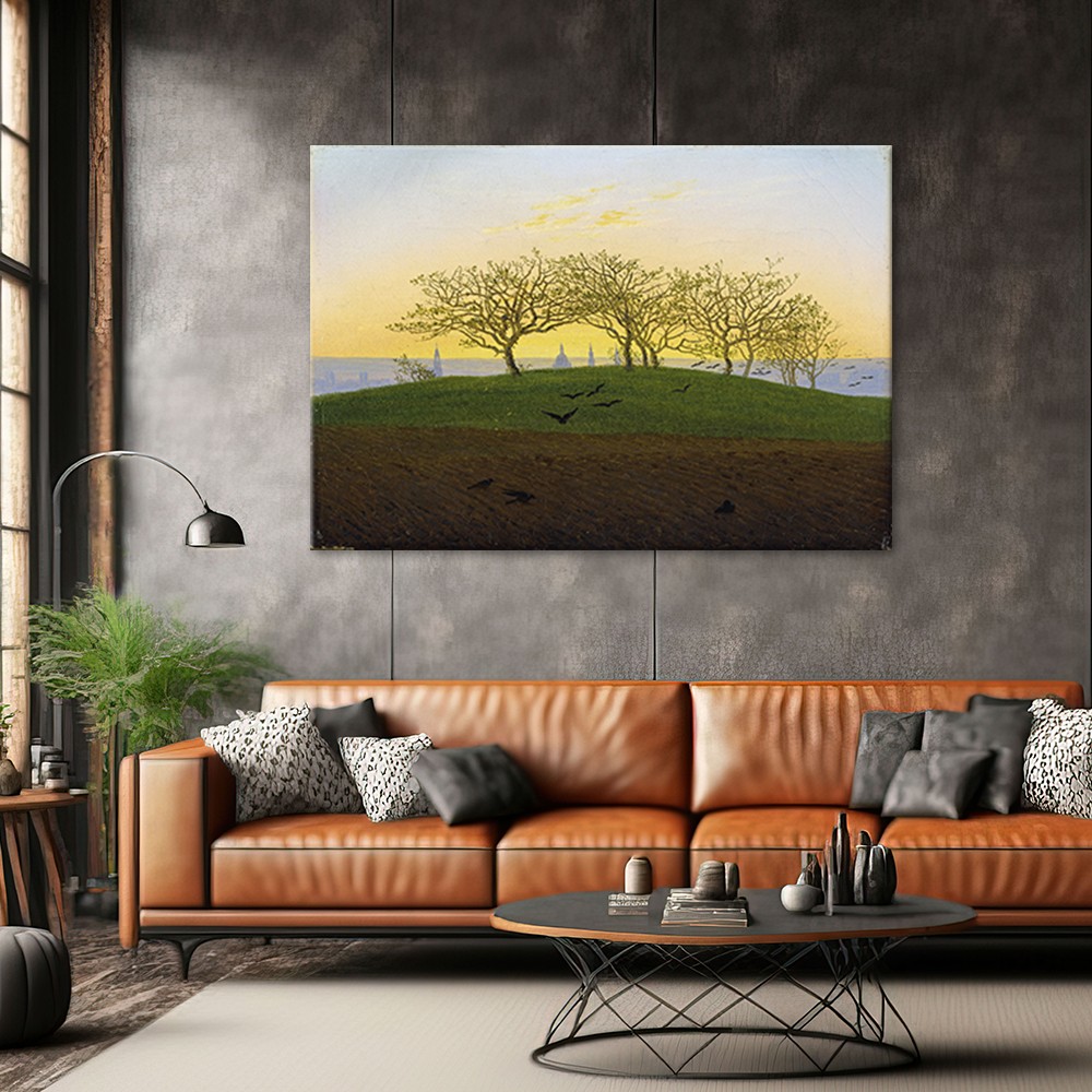 Leinwandbild, Hügel und Feld bei Dresden - Caspar David Friedrich