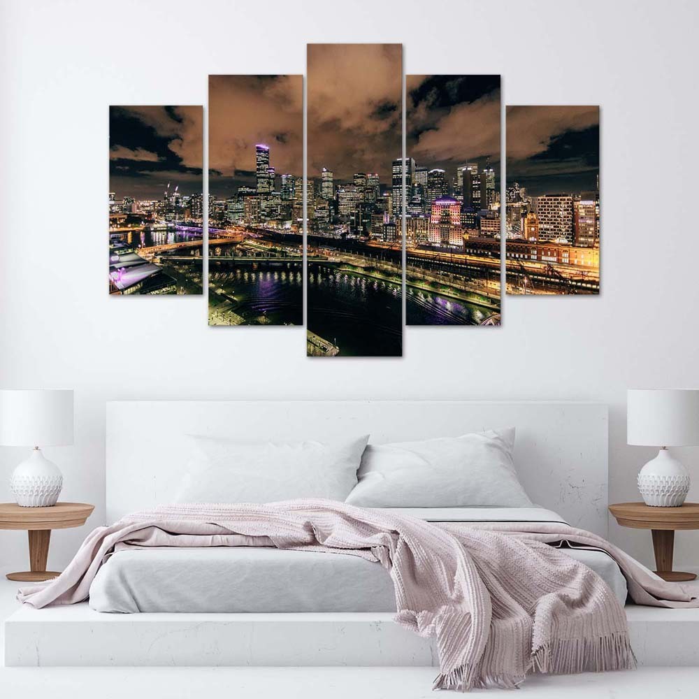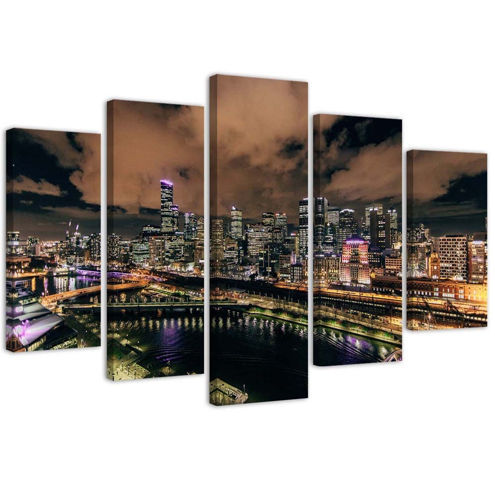 Leinwandbild 5 teilig, Architektur Stadt Nacht