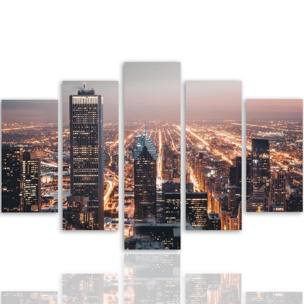 Leinwandbild 5 teilig, Wolkenkratzer Stadt Nacht
