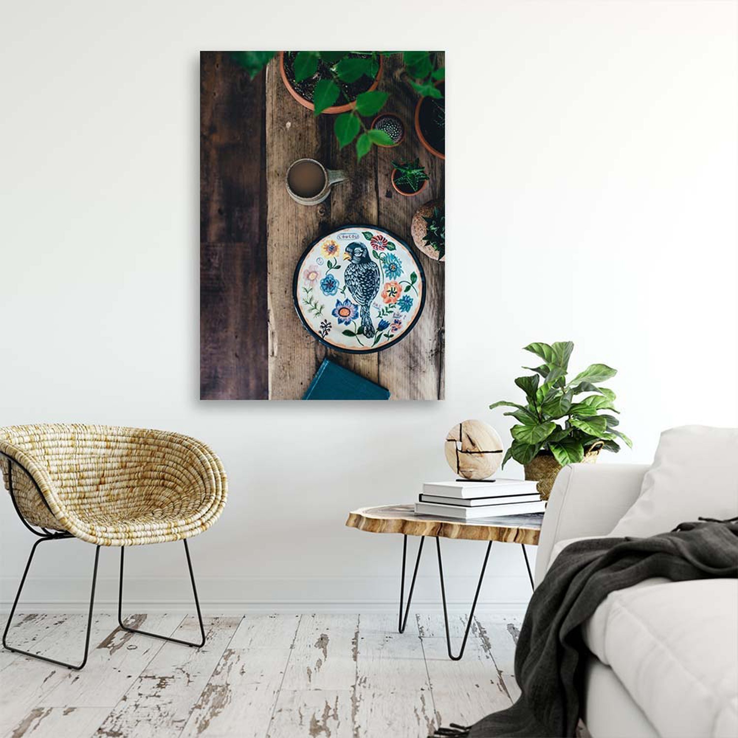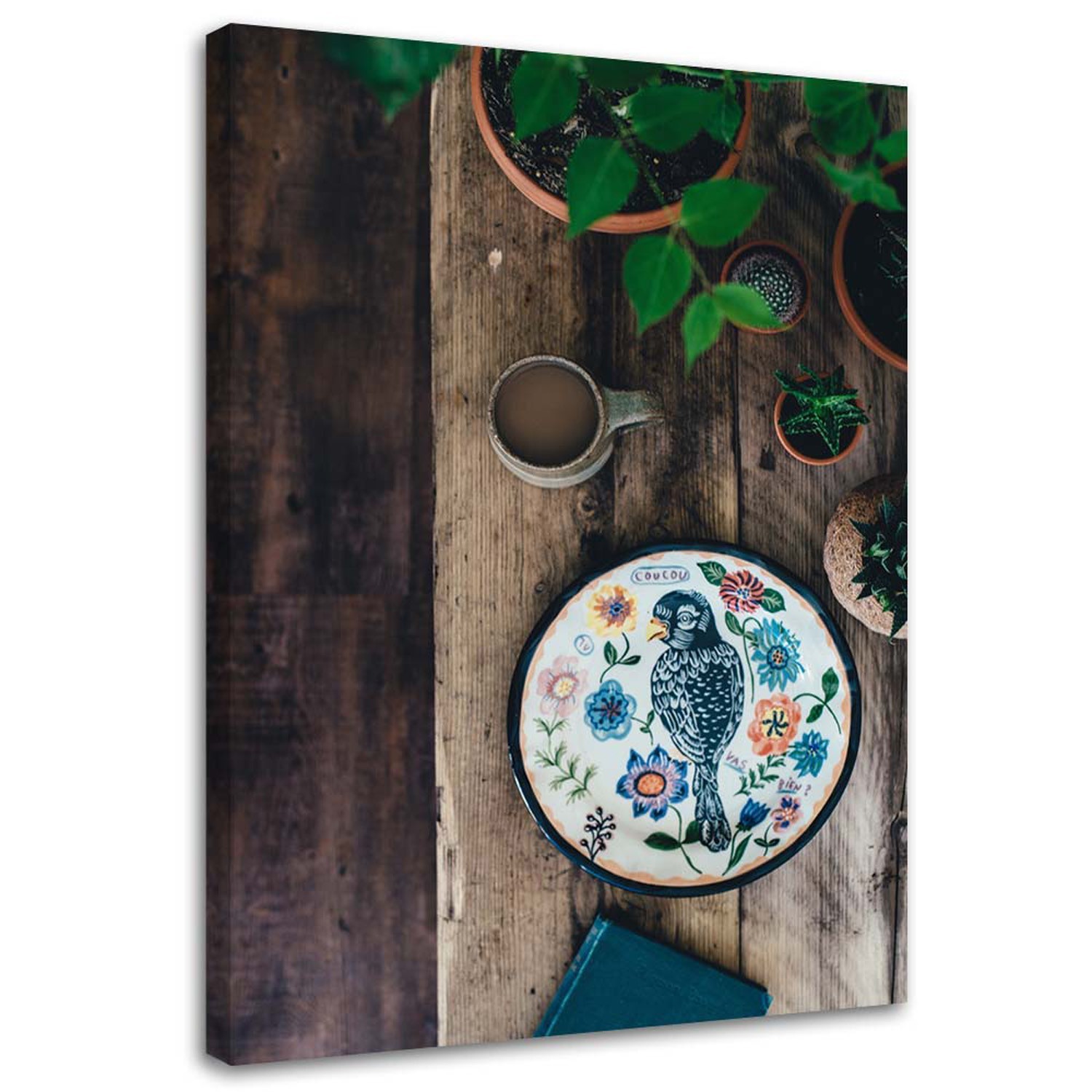 Bild auf Leinwand, Teller mit Vogel