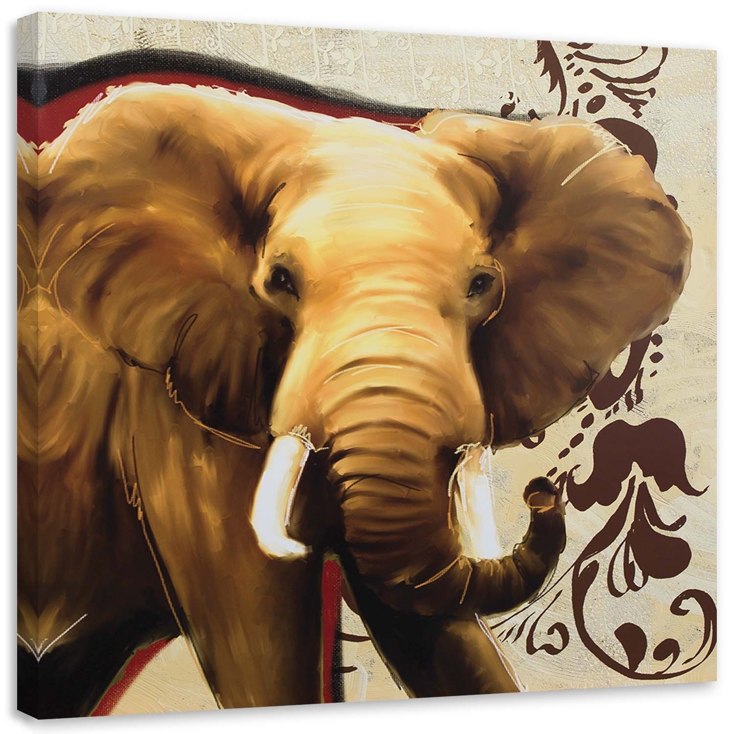 Leinwandbild, Erwachsener Elefant auf beigem Hintergrund