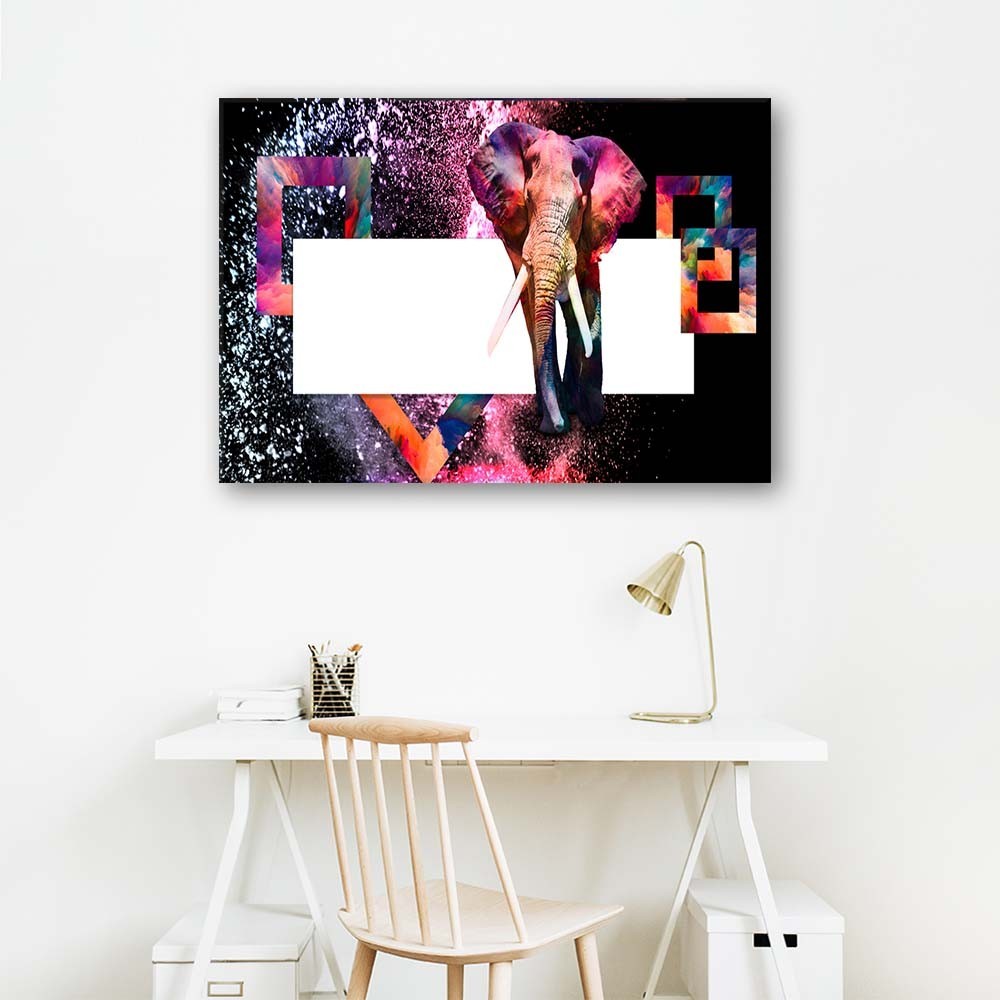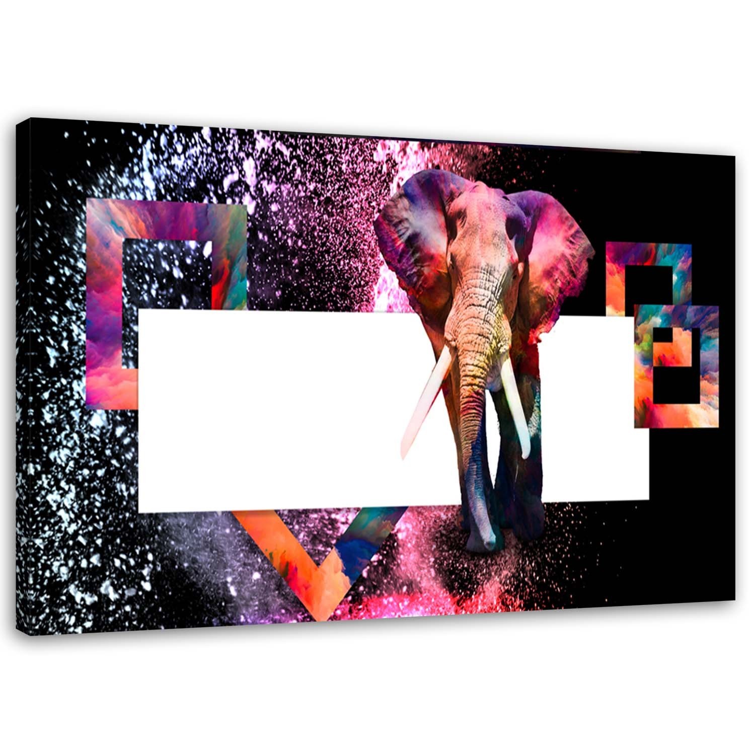 Leinwandbild, Mehrfarbiger Elefant auf schwarzem Hintergrund