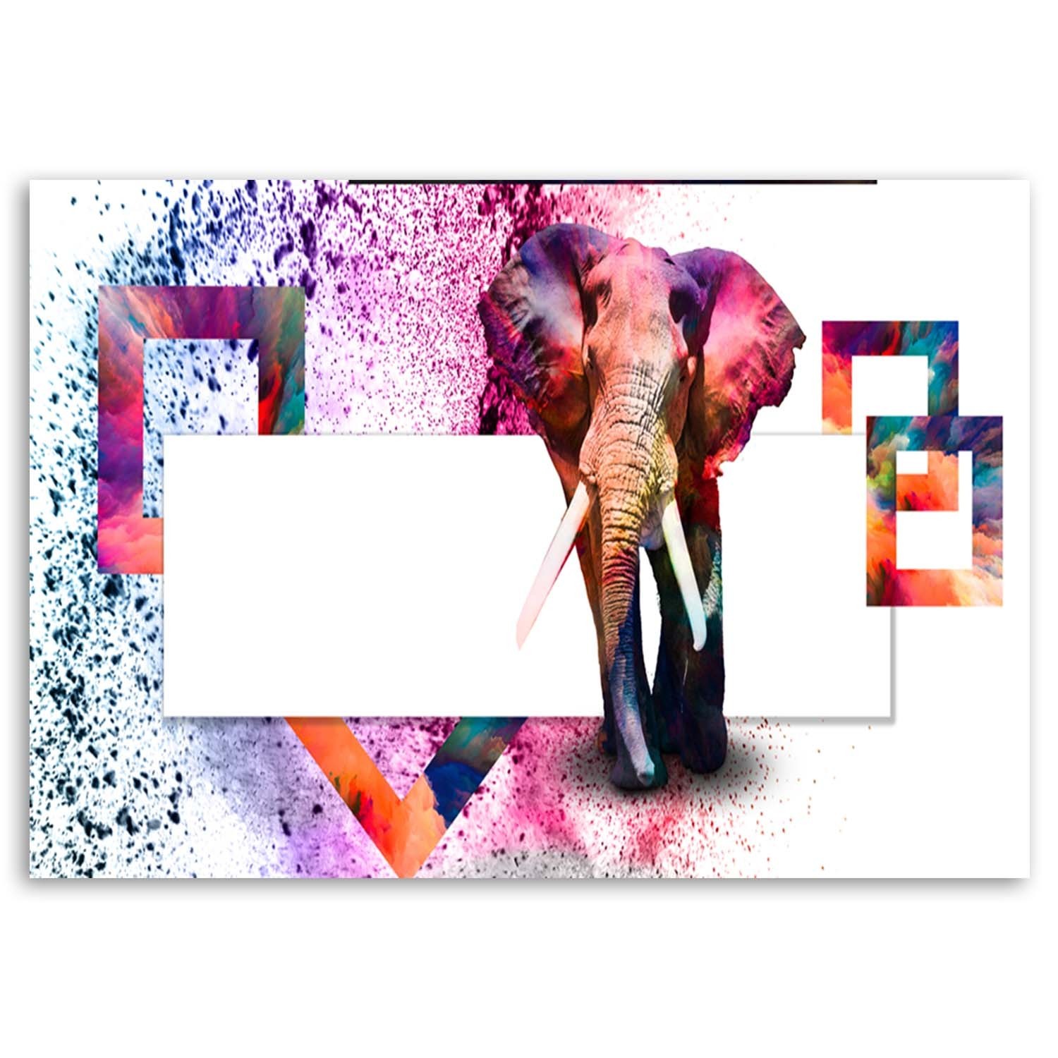 Leinwandbild, mehrfarbiger Elefant auf weißem Hintergrund