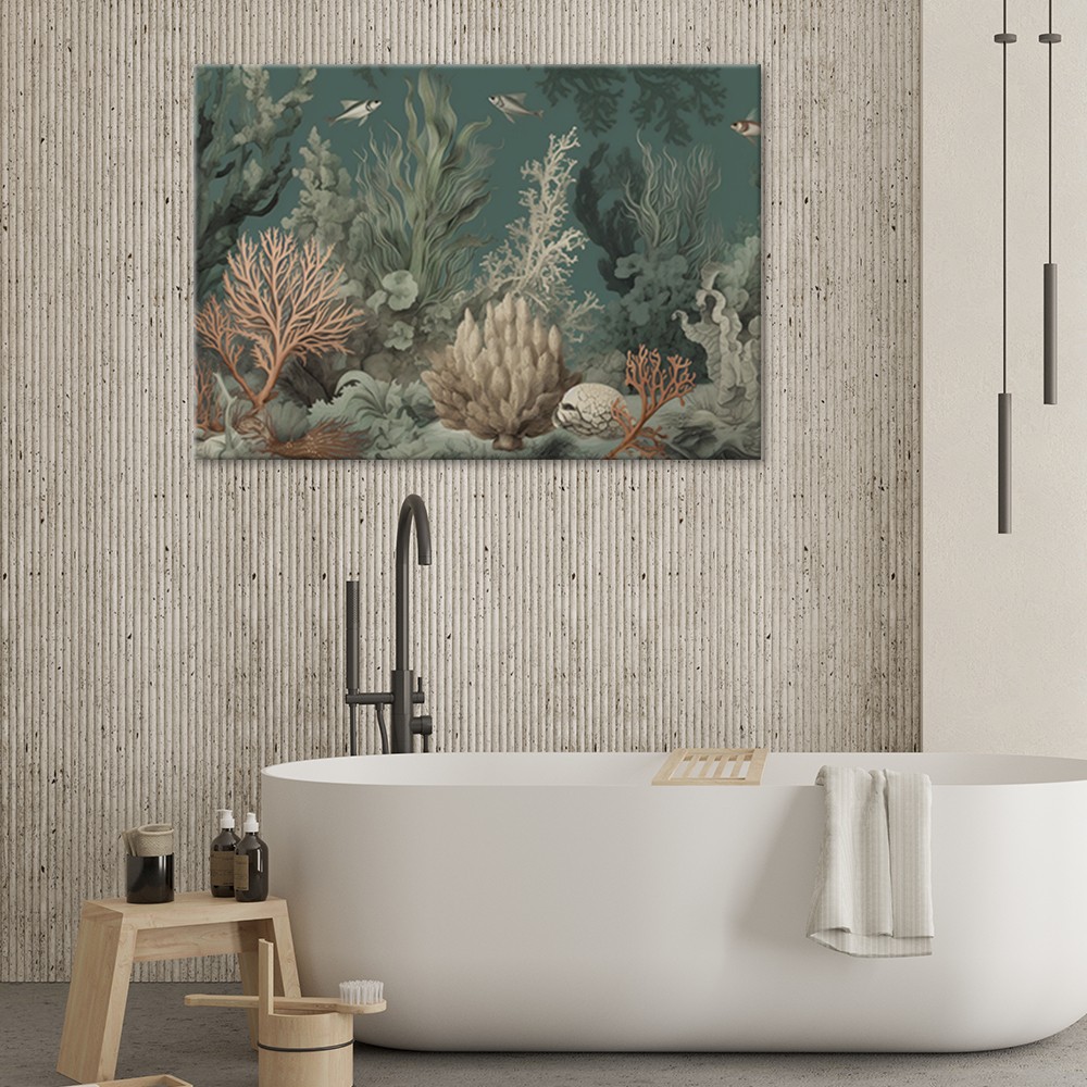 Leinwandbild, für das Badezimmer - Korallen und Fische