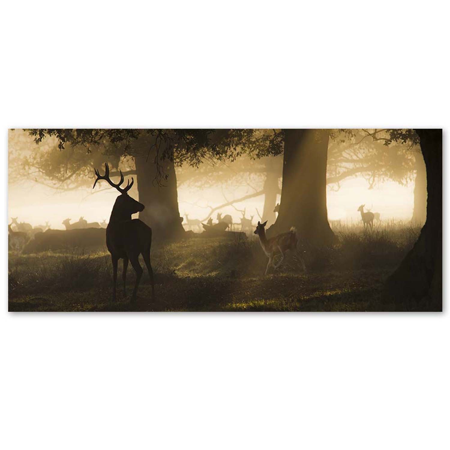 Bild auf Leinwand, Hirsche im Nebel