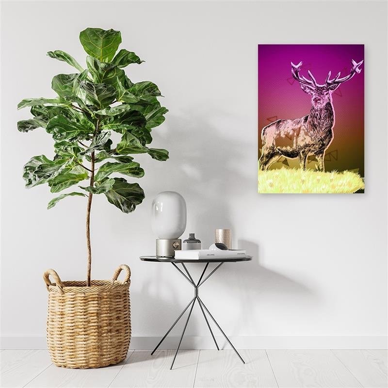 Leinwandbild, Hirsche im Schnee auf farbigem Hintergrund