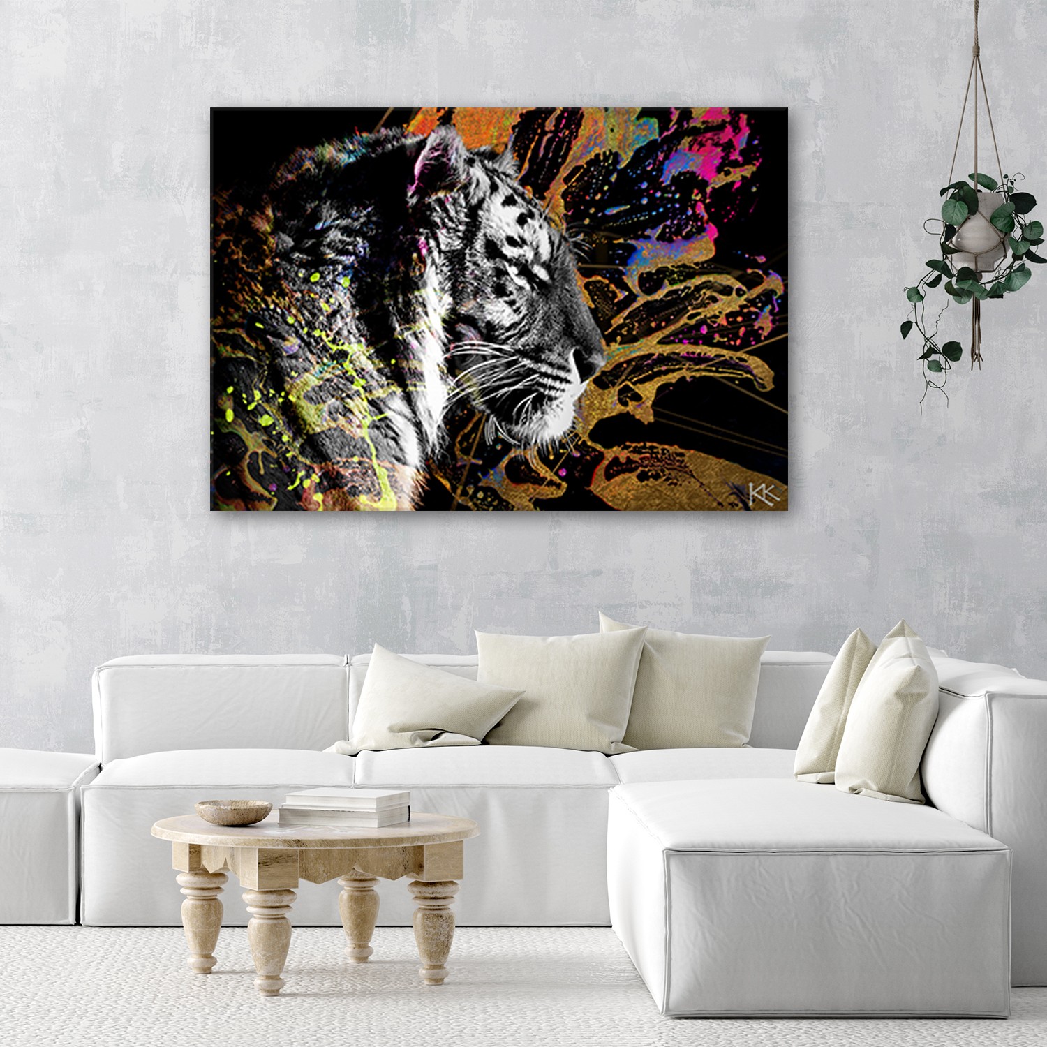 Leinwandbild, Tiger auf farbenfrohen Hintergrund