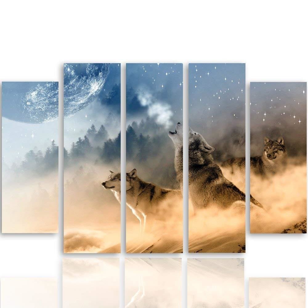 Leinwandbild 5 teilig, Wölfe Nebliger Wald Natur