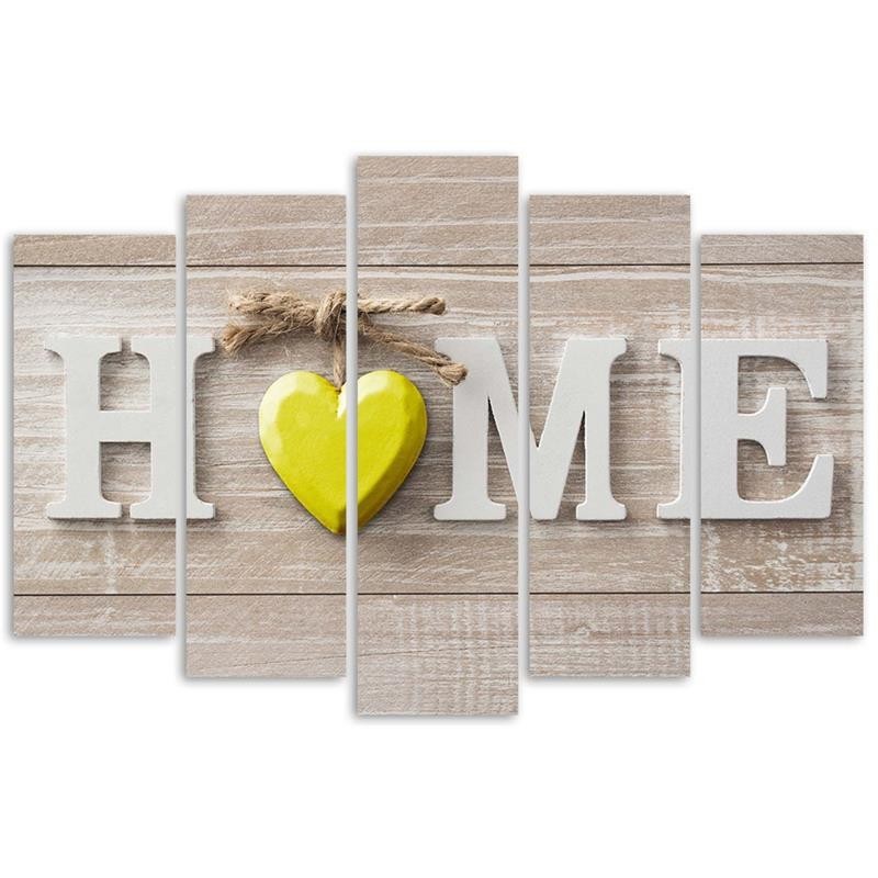 Leinwandbild 5 teilig, Home Haus Herz Holz Bretter