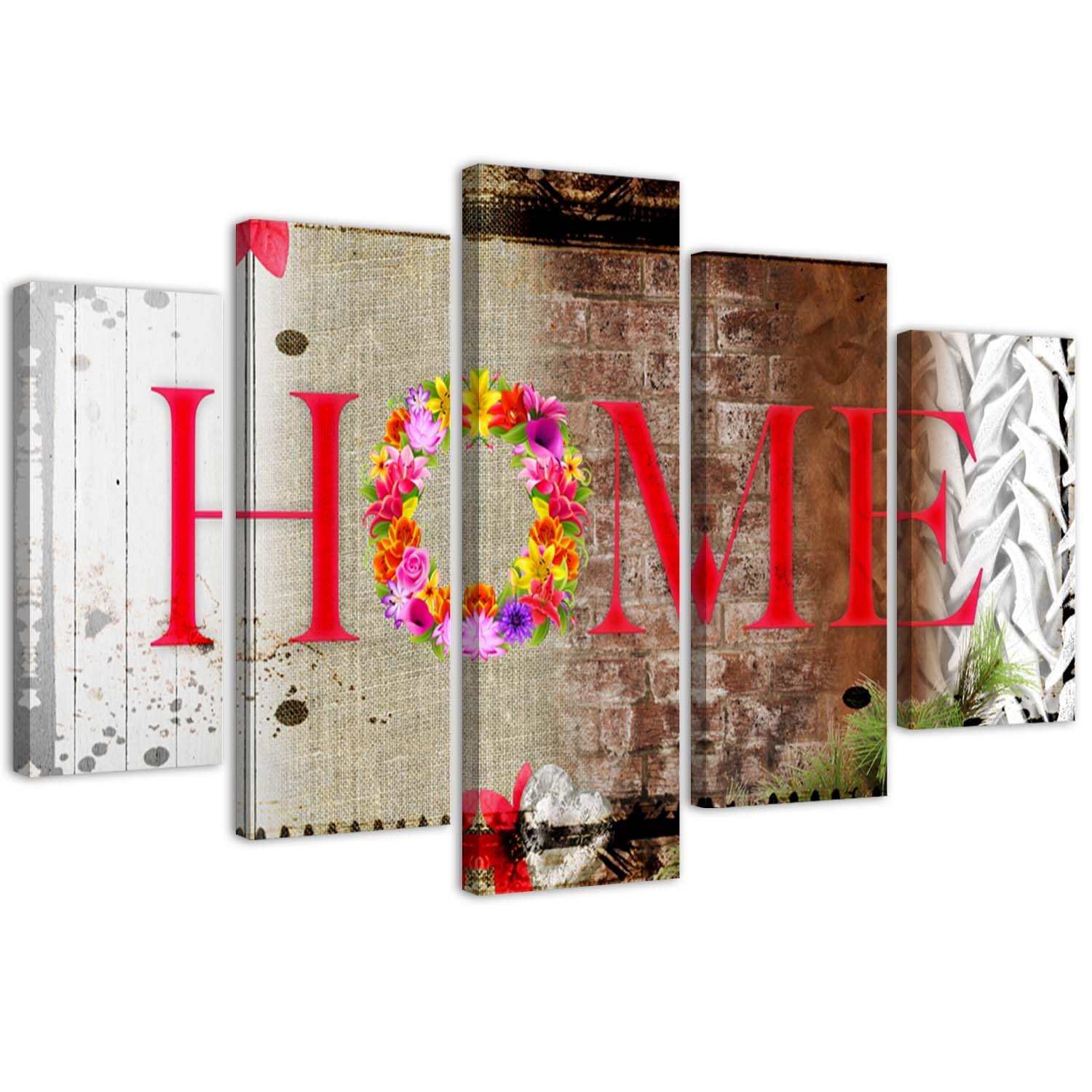 Leinwandbild 5 teilig, Startseite Inschrift Blumen