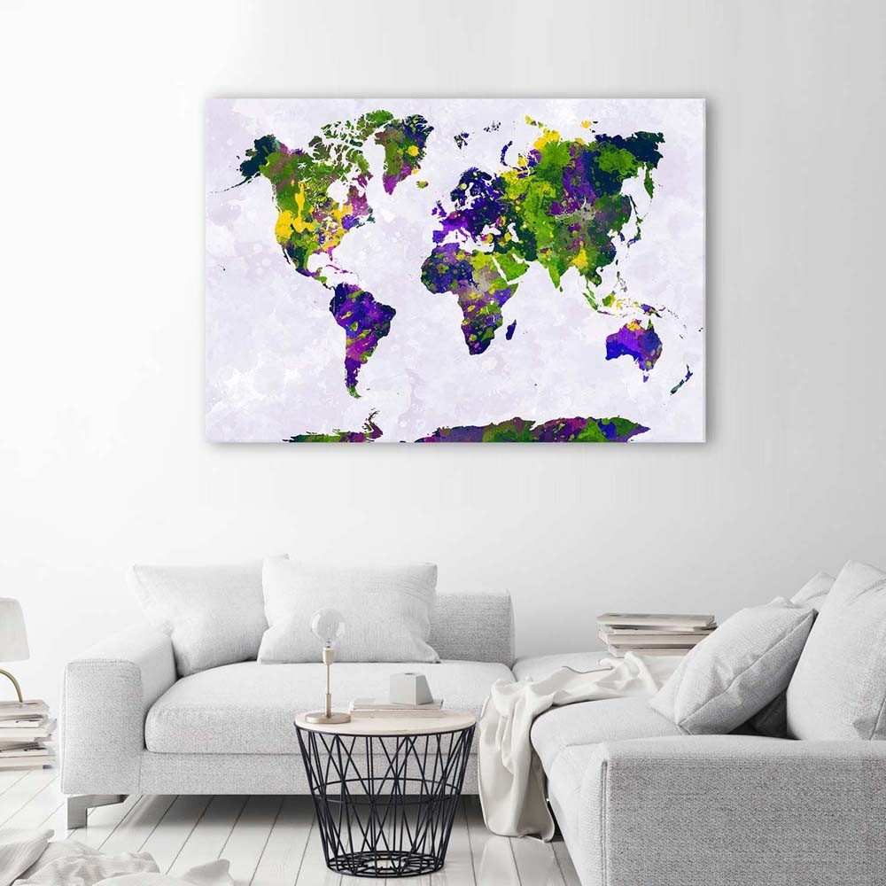 Leinwandbild, Gemalte Weltkarte