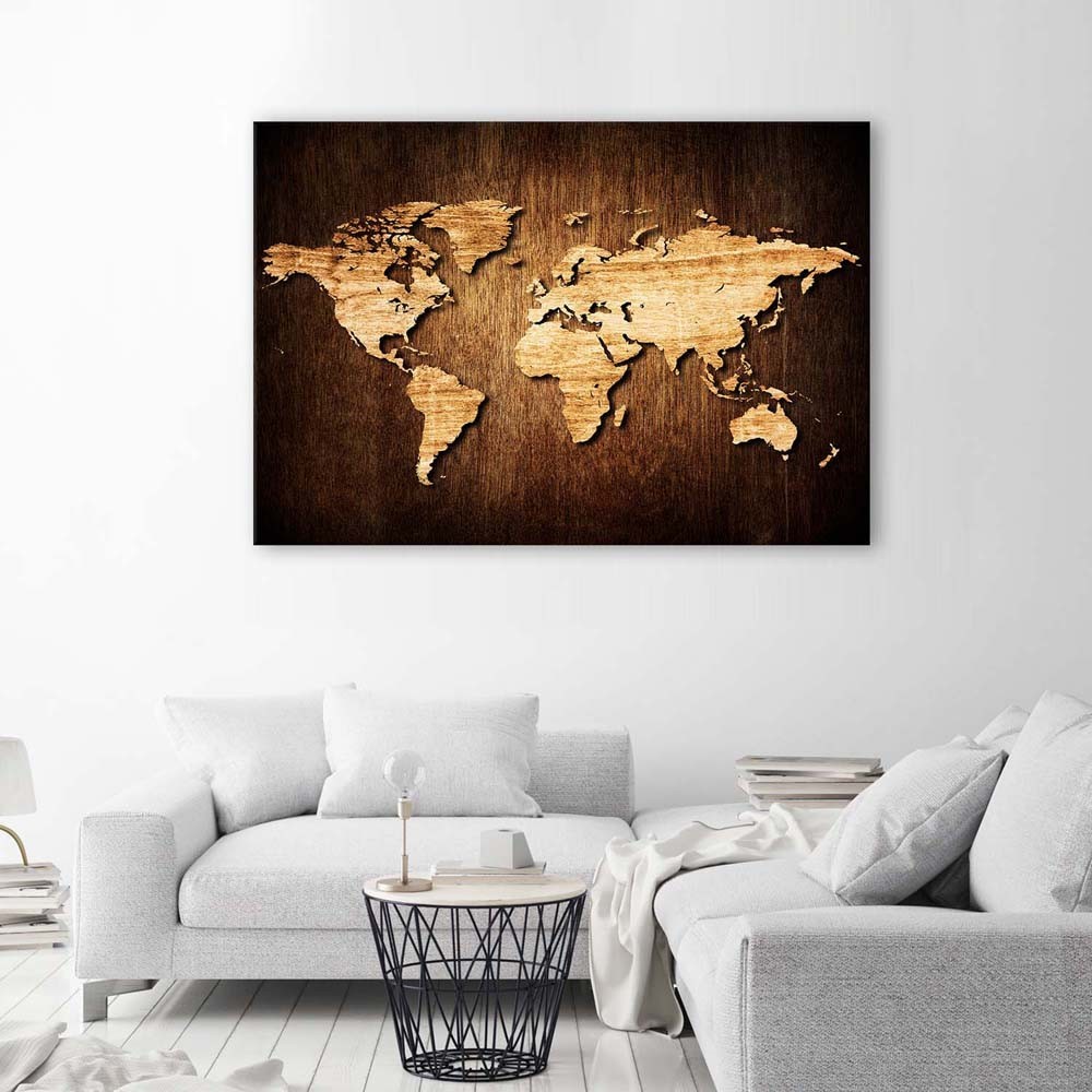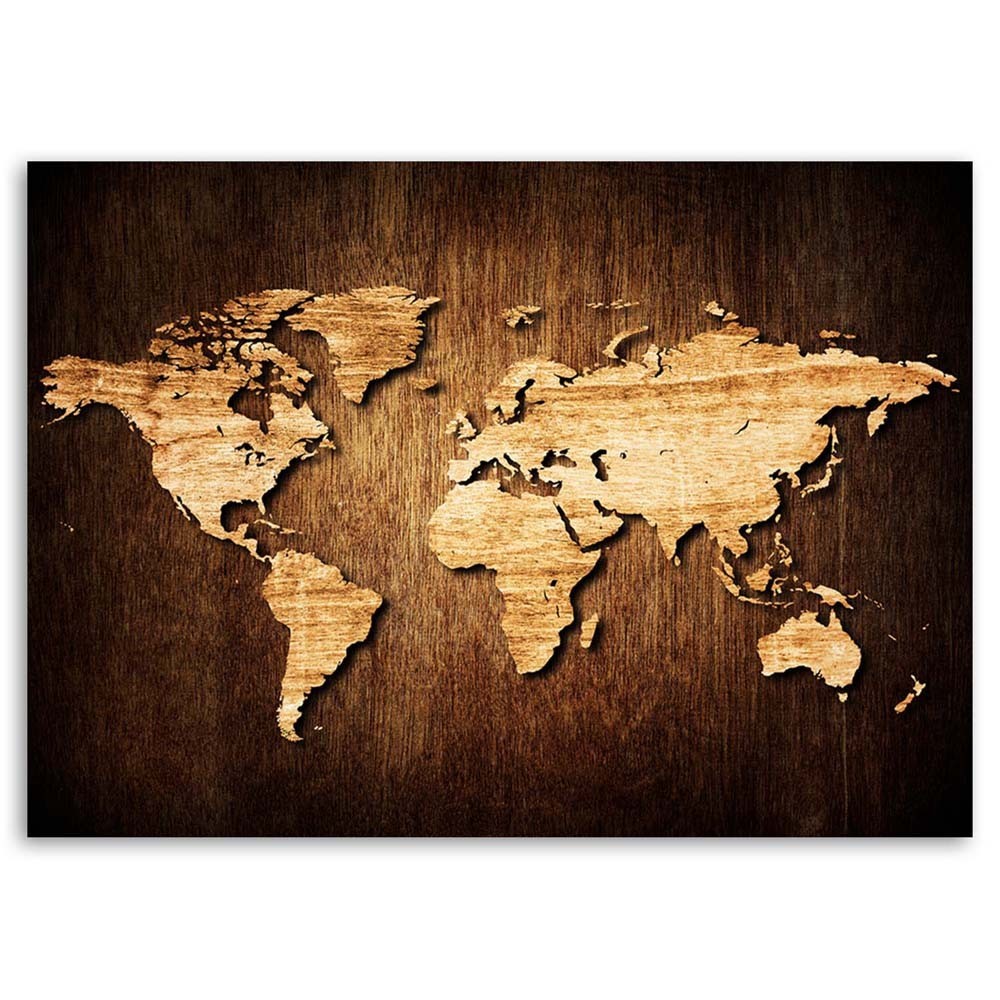 Leinwandbild, Weltkarte aus Holz