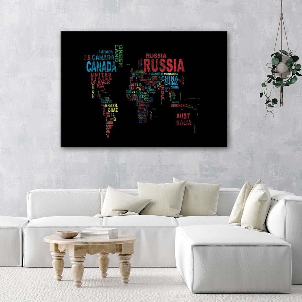 Leinwandbild, Weltkarte mit den Namen der Länder