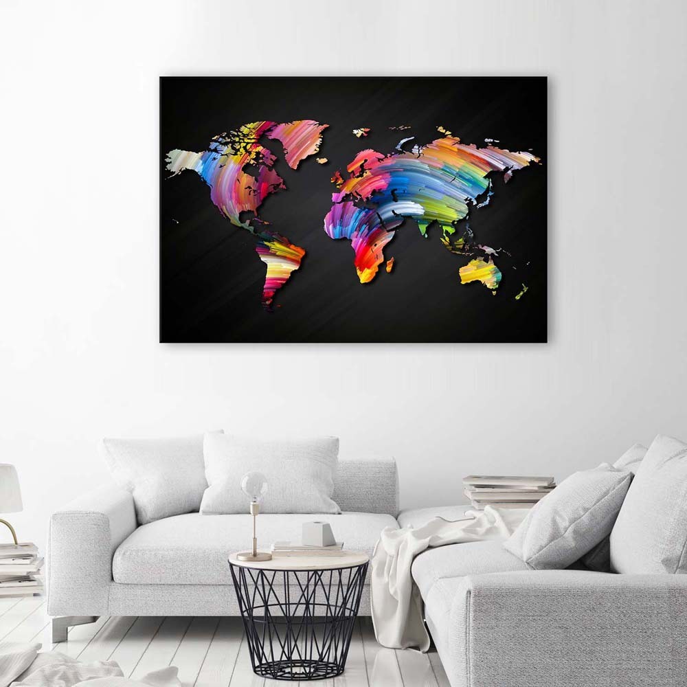 Leinwandbild, Weltkarte mit verschiedenen Farben
