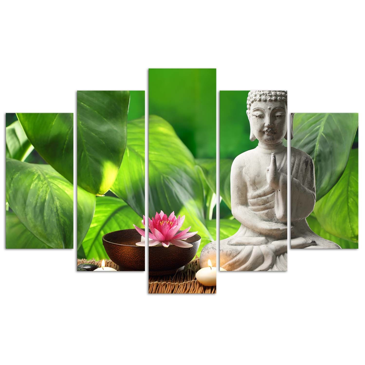 Leinwandbild 5 teilig, Buddha-Blätter Blumen