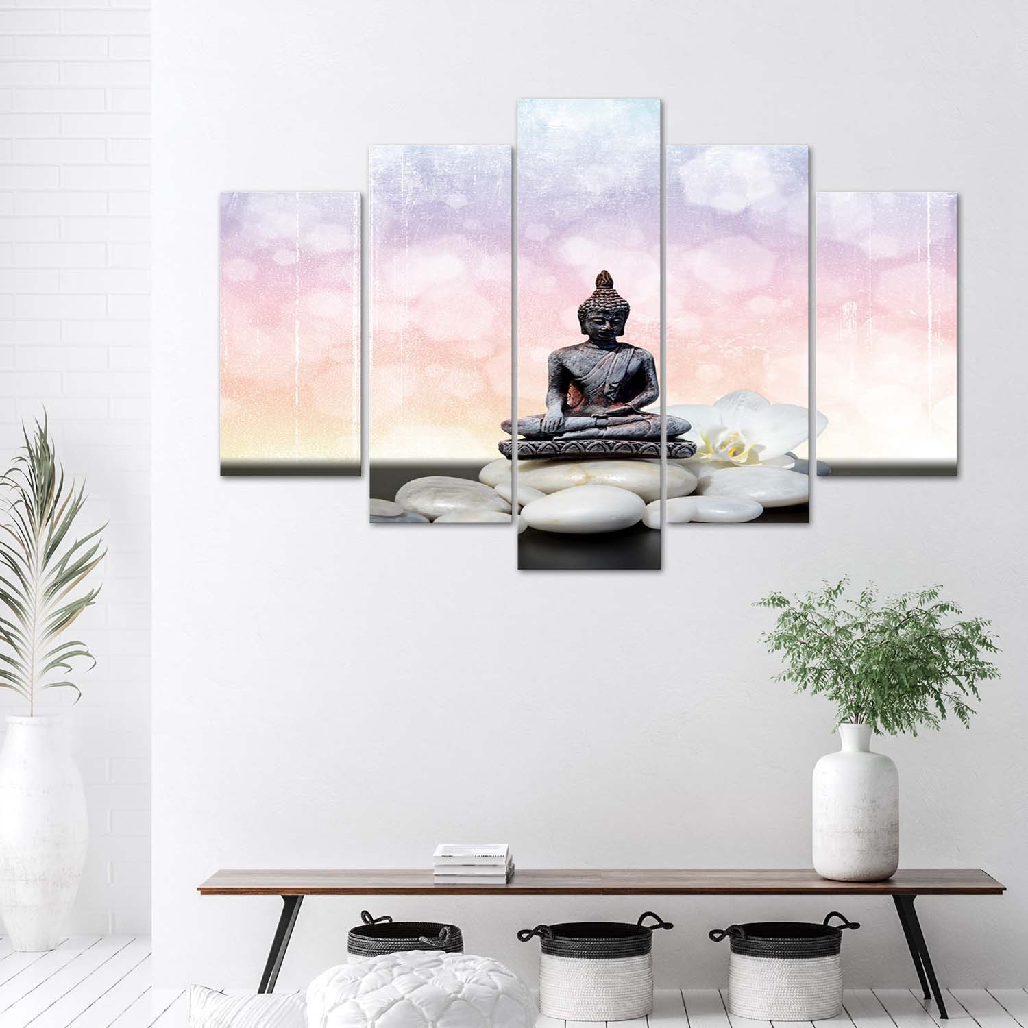 Leinwandbild 5 teilig, Zen Buddha Steine