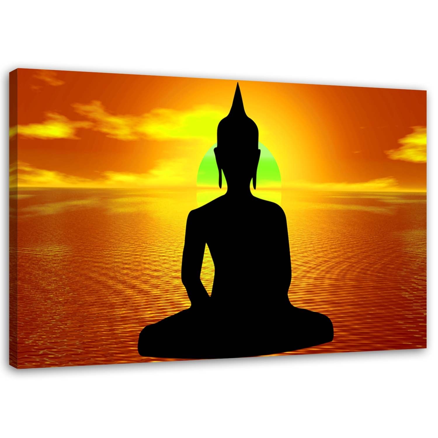 Leinwandbild, Buddha-Meditation bei Sonnenaufgang