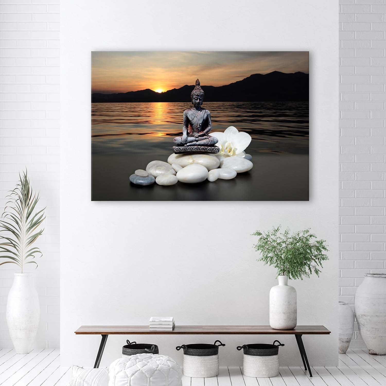 Leinwandbild, Buddha vor dem Hintergrund der untergehenden Sonne
